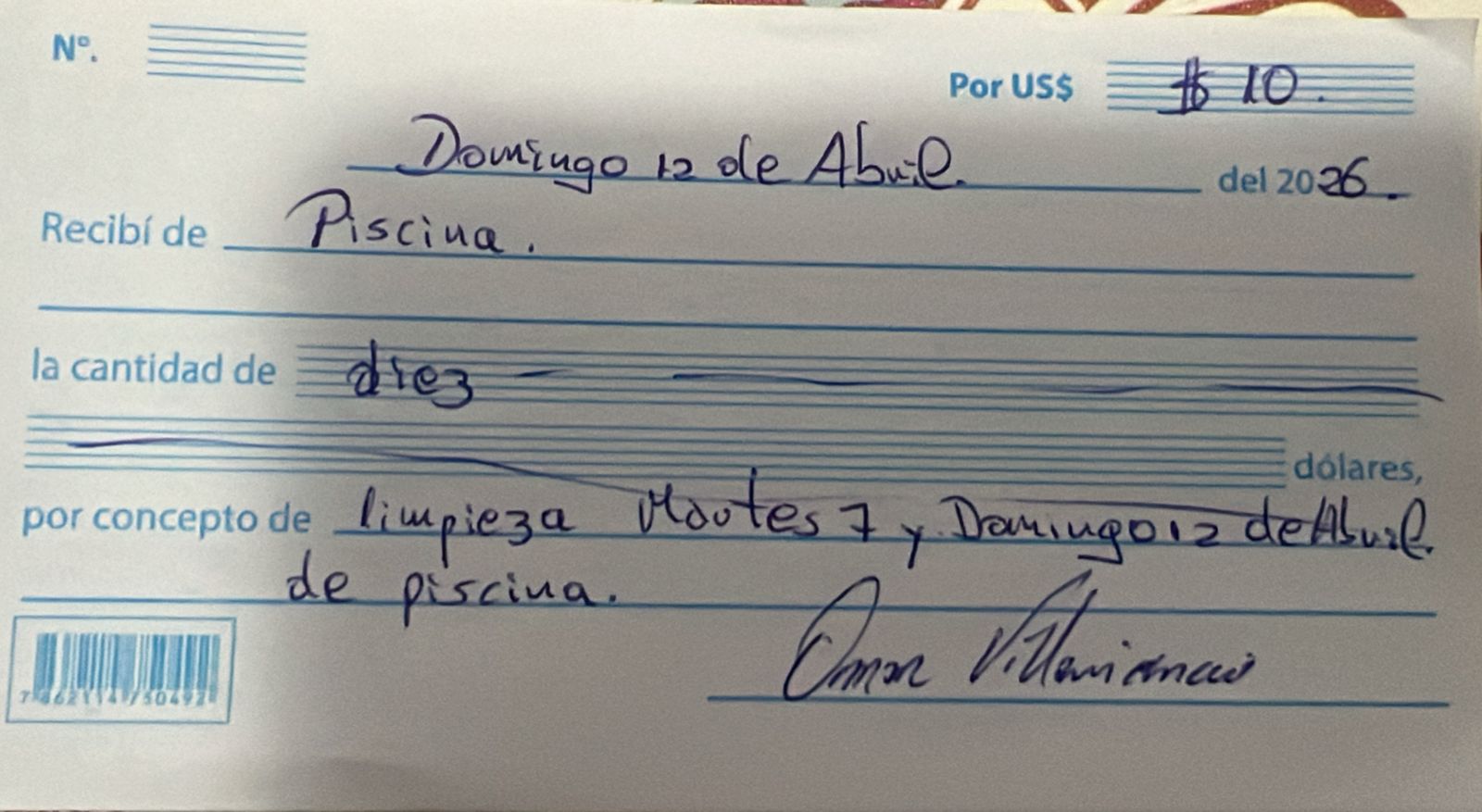 Limpieza de piscina $20.00